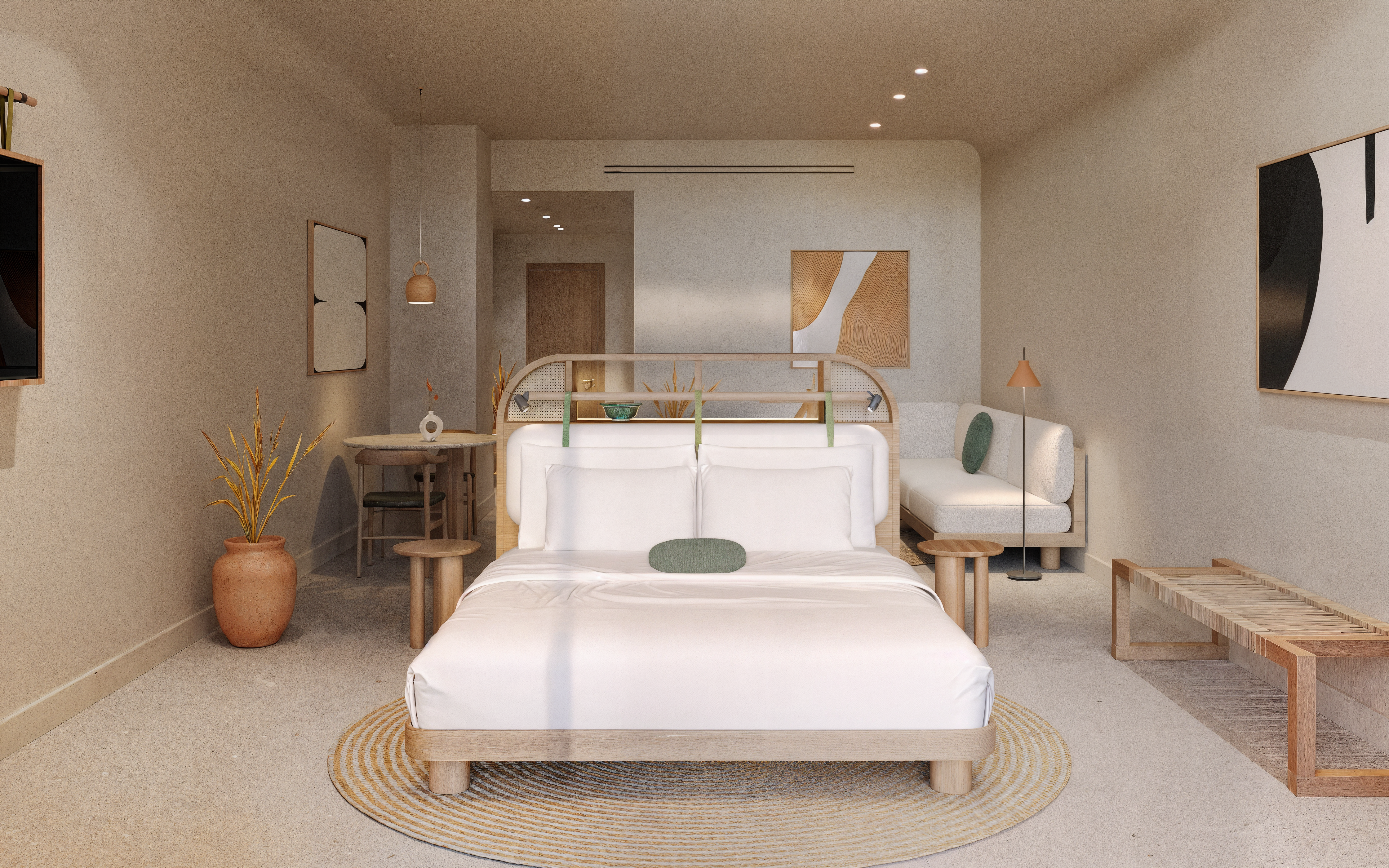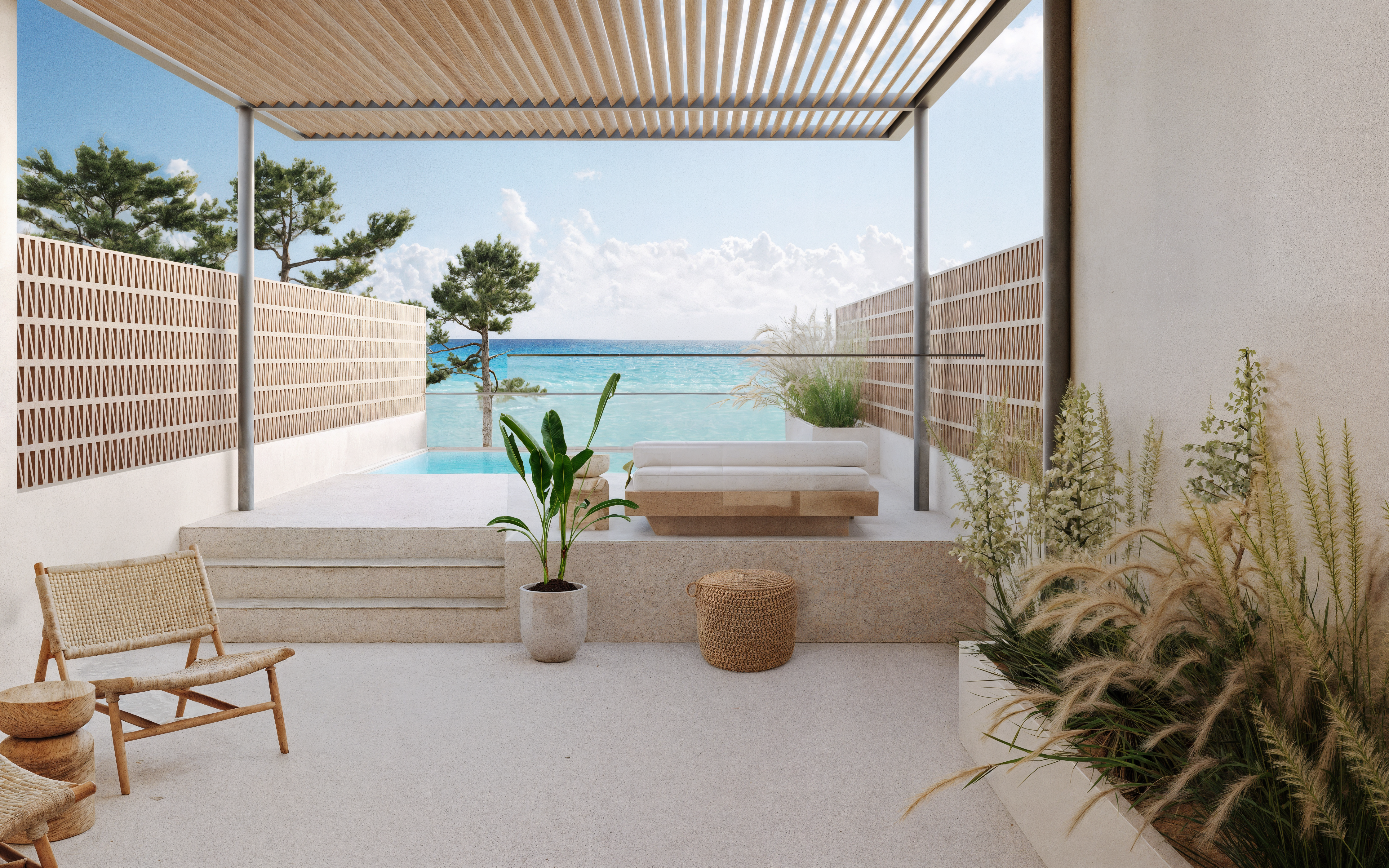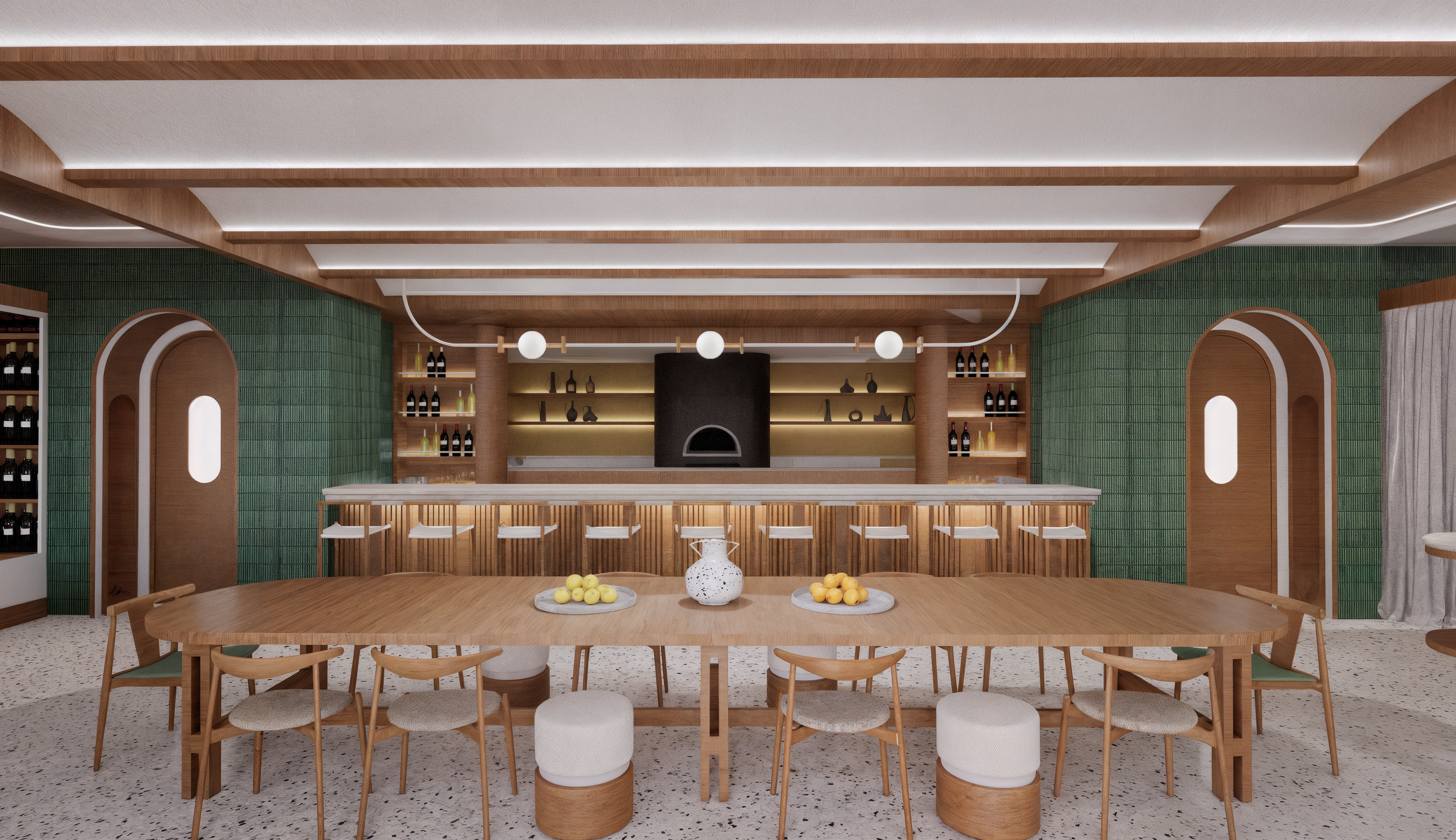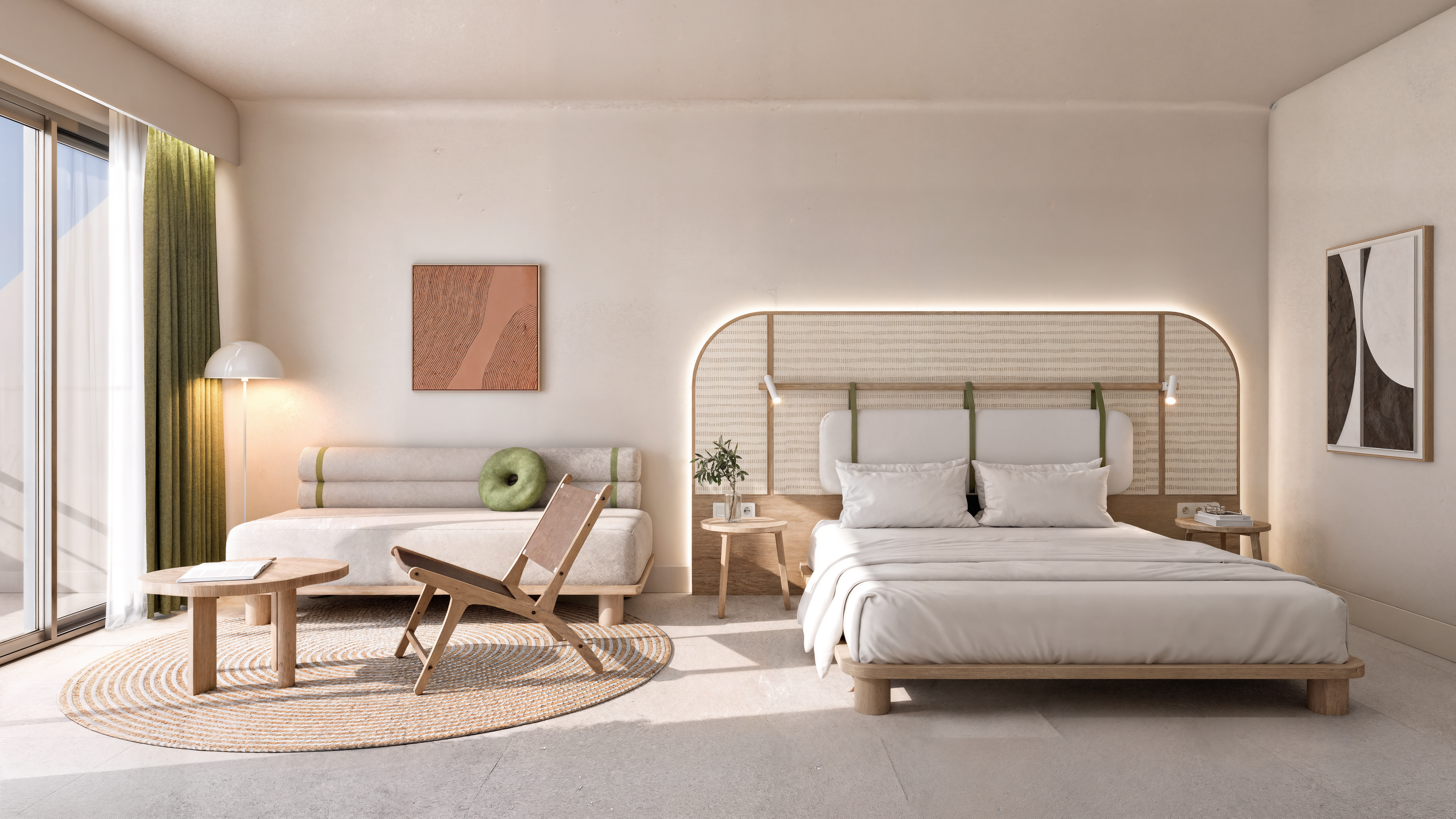 This project addresses the renovation of the Sithonia building, one of the two central and iconic building structures of the historic Porto Carras resort in Chalkidiki. The design intention was to reinvigorate the spaces, in order to meet the expectations, demands and needs of the contemporary traveler, while maintaining the building’s modernist and geometric identity. In the process of converting the building into a high-end 5* family hotel, the redesign of the outdoor spaces with a masterplan was key. The hotel is comprised of 8 floors in total. The first two host the premium suites and the common areas including the lobby, 4 restaurants, 1 bar, a kids’ club, a gym, a spa and 3 retail units. The rest of the floors are comprised entirely of rooms. Two large lagoon pools and the beach area are the main poles of the masterplan and are accompanied by a pool bar, a beach bar and a seaside restaurant.